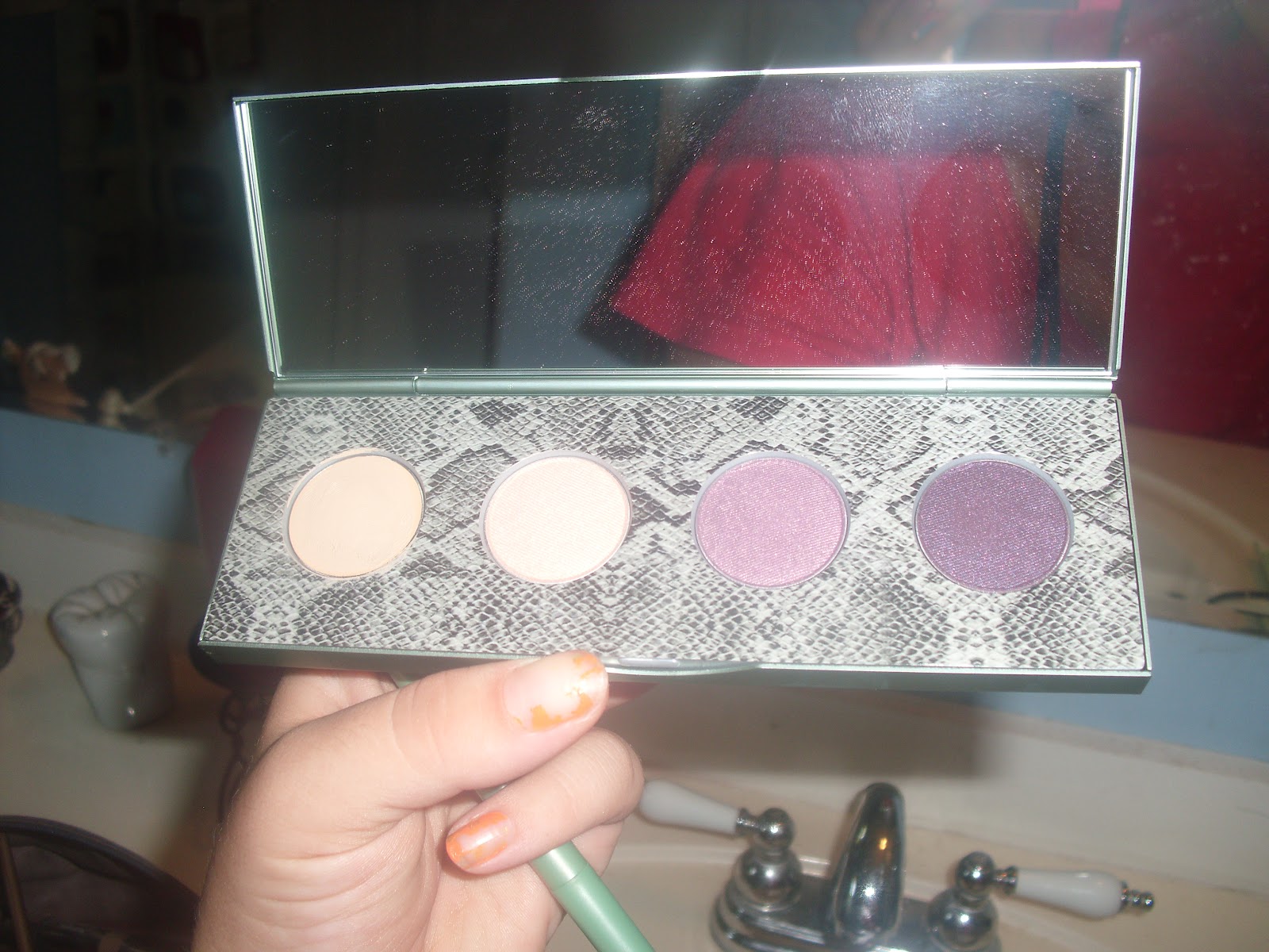 I love the Smokey eye kit from Mally. it comes with a black pencil liner for your eyes. and then the smokey eye shadows. This kit includes it all the first little sucker would be your foundation/base. then your brow lighter pinkish color lip color and then the last one would be your smokey part that goes in the crease of your eyes. only thing i wish it carried was a brush to go with it. The mirror is handy as well because you can take it on the go and put your makeup on.